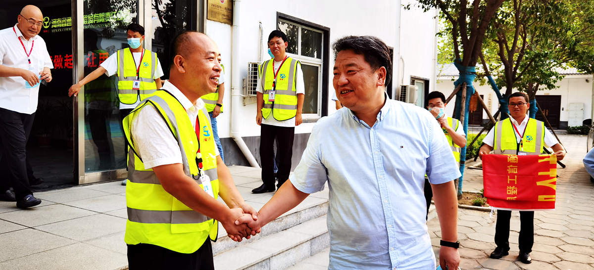 2021年8月4日,河南省聯(lián)通公司總經(jīng)理童海波、副總經(jīng)理王宜科、資產(chǎn)運(yùn)營部總經(jīng)理孫海青、綜合部總經(jīng)理馬靈一行,蒞臨我公司慰問調(diào)研并贈送榮譽(yù)錦旗。童總對我公司在近期抗洪搶險(xiǎn)中保障河南聯(lián)通網(wǎng)絡(luò)做出的貢獻(xiàn)給予了充分的肯定和感謝。